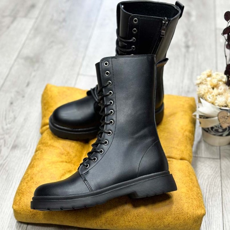 بوت زنانه زیپدار چرم مشکی ساق بلند بوت سربازی زنانه بغل زیپی رنگ مشکی ضد آب سایز بندی : 37 38 39 40 ارتفاع لژ: 3 سانتی متر کشور سازنده: ایران جنس:چرم صنعتی کفی:طبی و نرم نوع بسته شدن: زیپ و بند داخل پشمی و ضد آب