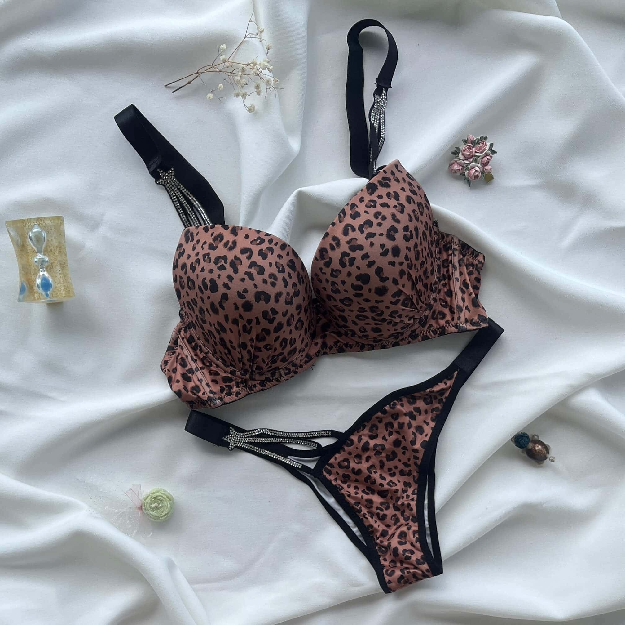 مدل پلنگی با طراحی الهام گرفته از برند محبوب Victoria’s Secret، ظاهری لوکس دارد و با جک دار بودن سوتین، به زیبایی فرم سینه کمک می کند و برای استفاده روزمره یا مناسبت های خاص گزینه ای عالی محسوب می شود. جنس لطیف، دوخت تمیز و فرم دهی عالی از جمله ویژگی هایی ست که این محصول را در میان ست های مشابه متمایز می کند.
