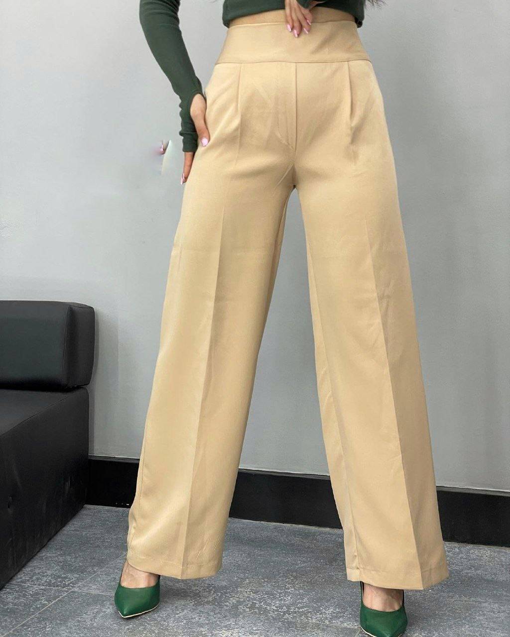 مدل نیم بگ با فرم آزاد و در عین حال شکیل، باعث می‌شود شلوار روی پا خوش‌فرم دیده شود و راحتی لازم برای استفاده طولانی‌مدت را حفظ کند. قد 100 سانتی‌متری این مدل، تناسب مناسبی با انواع کفش‌های پاشنه‌دار و رسمی ایجاد می‌کند و جلوه‌ای کشیده‌تر به پاها می‌دهد.