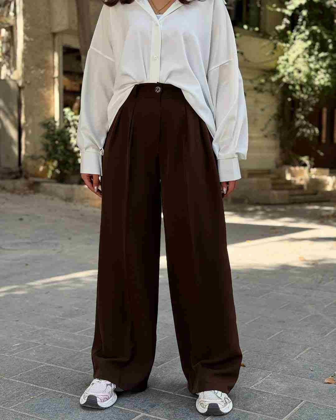 فرم فول بگ این شلوار آزادی حرکت مطلوبی فراهم کرده و بهراحتی با شومیز، بلوز، مانتو یا کتهای سبک ست میشود.