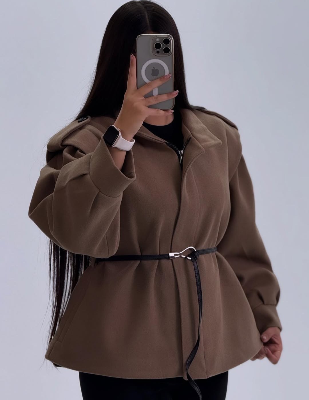 پالتو زنانه مزونی مدل شیدا با جنس فوتر کوبیده دورو اورجینال ترک، کاملاً آسترکشیشده و مناسب استایل شیک، رسمی و زمستانی.