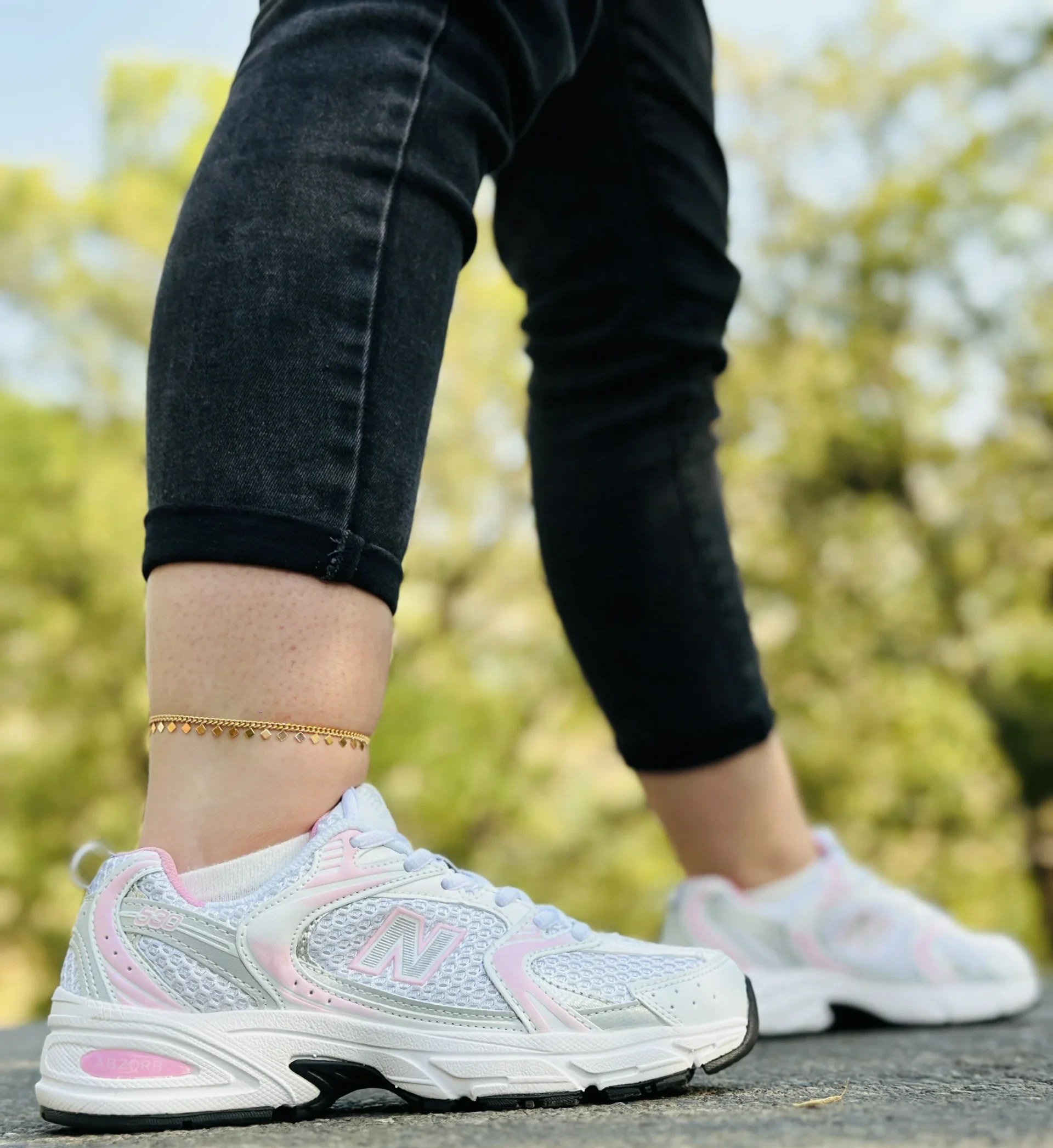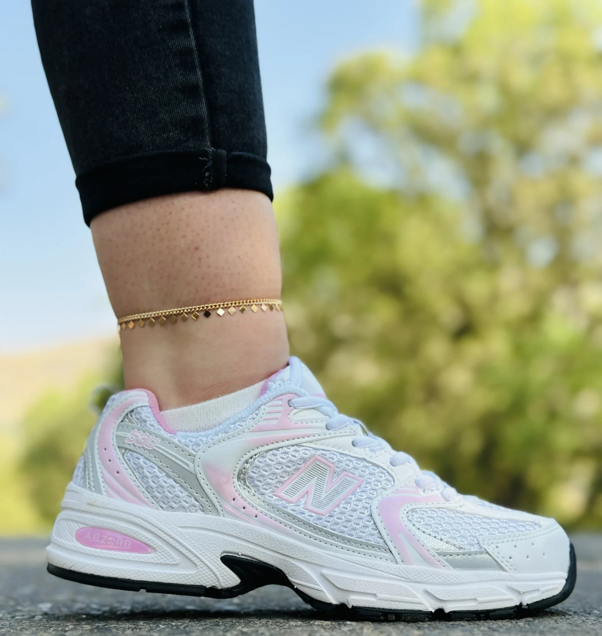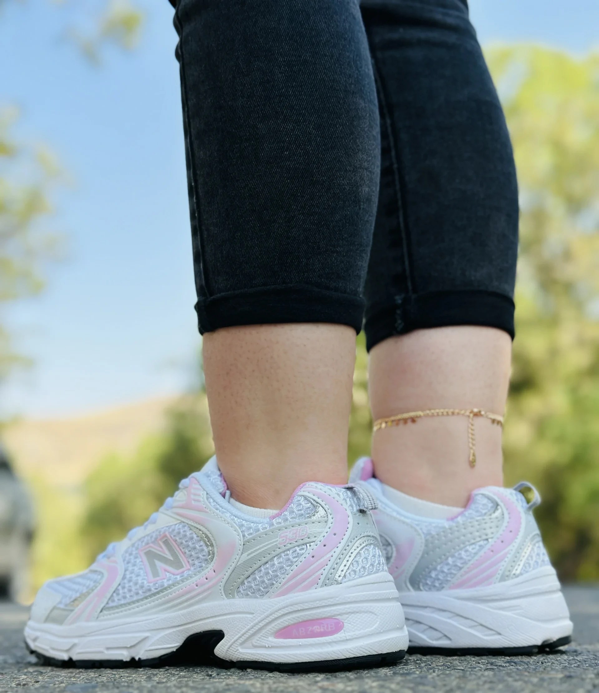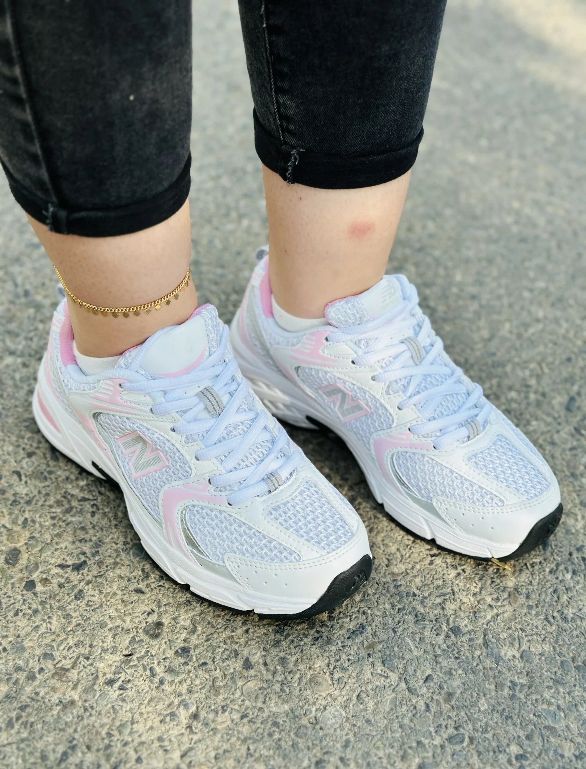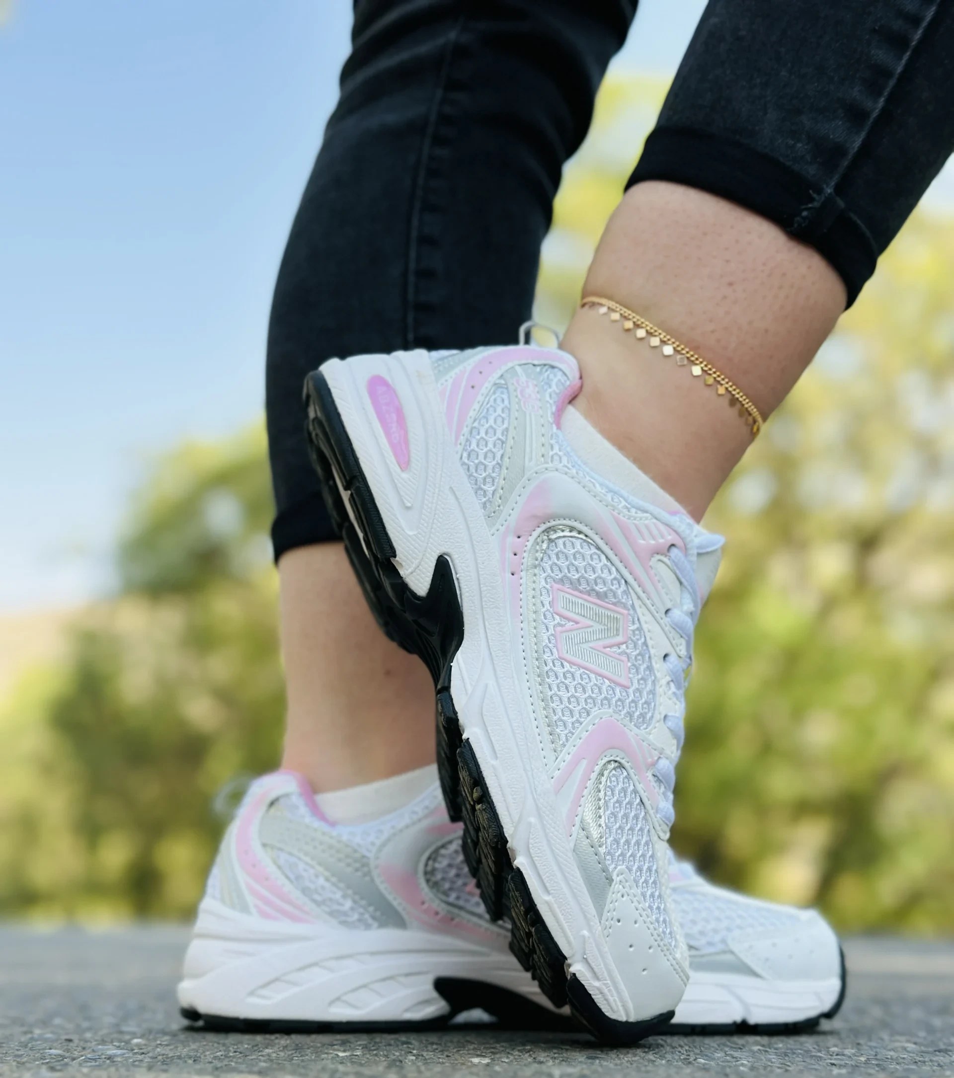 خرید کتونی نیوبالانس 530 سفید صورتی با طراحی اسپرت، کفی راحت و مناسب استفاده روزمره و پیادهروی.