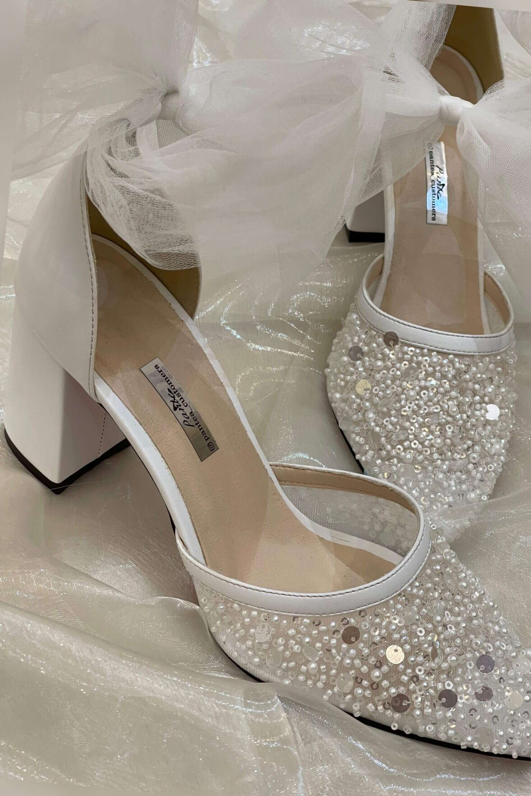اندازه پاشنه: ۵ سانت رنگ بندی: سفید جنس رویه: تور زونیکس